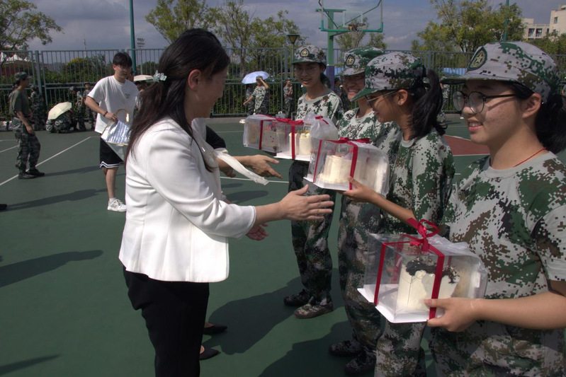 殷切嘱托之后,学院领导现场检阅新生队列训练,整齐的步伐、昂扬的斗志赢得阵阵认可。老师们更带来精心准备的慰问礼物,由领导亲手分发至教官与每一位新生手中,既是对连日训练的鼓励,也寄予着对新生日后学习生活的美好期盼。