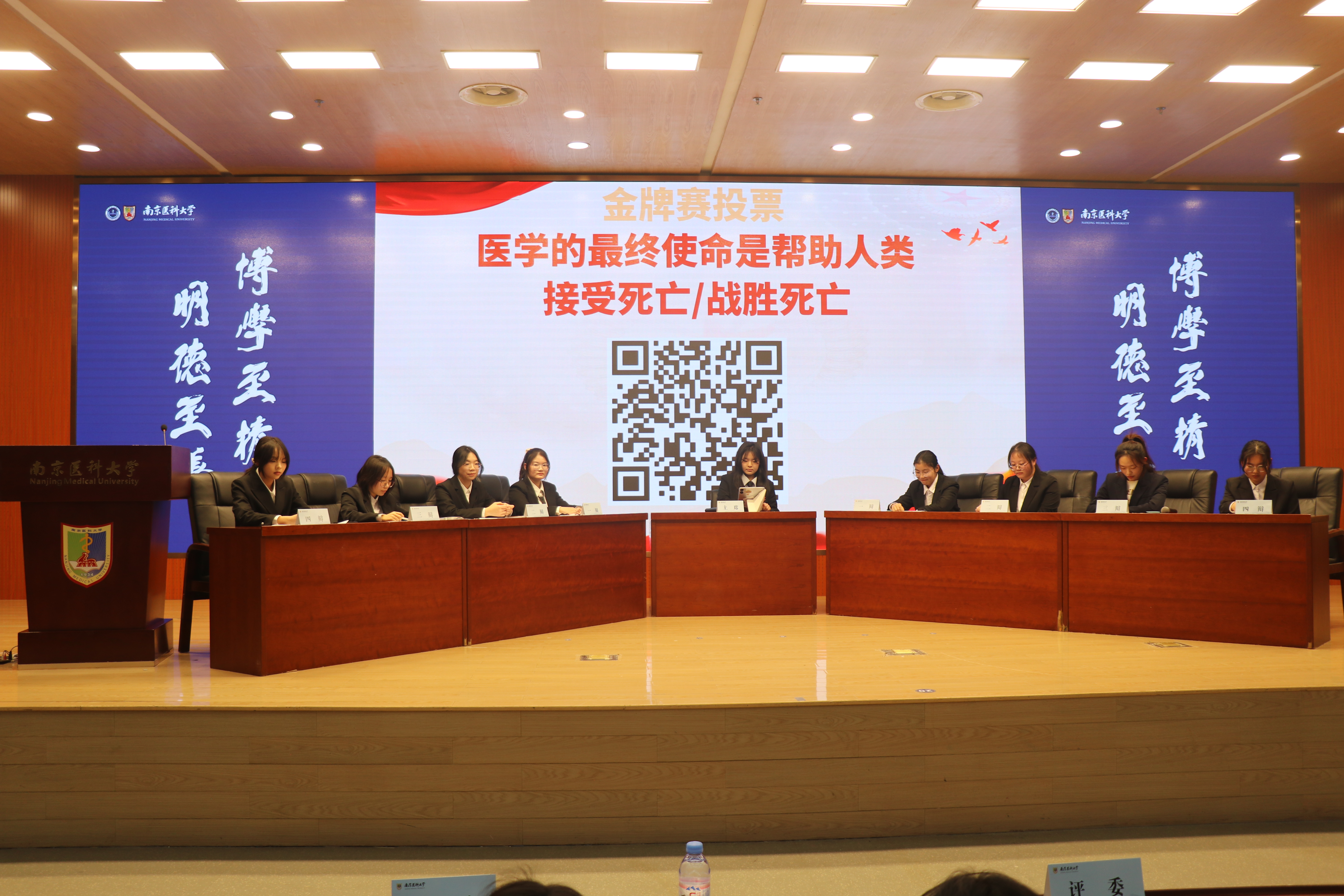 比赛分为铜牌赛与金牌赛两场。其中,铜牌赛紧扣“青马”育人主题,以“青年造就时代/时代造就青年”为辩题,引导同学们深入思考青年与时代的关系,增强使命意识与历史责任感;金牌赛则围绕“医学的最终使命是帮助人类接受死亡/战胜死亡”这一深刻议题,展开对医学本质与人文价值的探讨。辩手们逻辑严密、言辞犀利,既有理性分析的深度,也有情感共鸣的温度,现场气氛热烈,掌声不断。