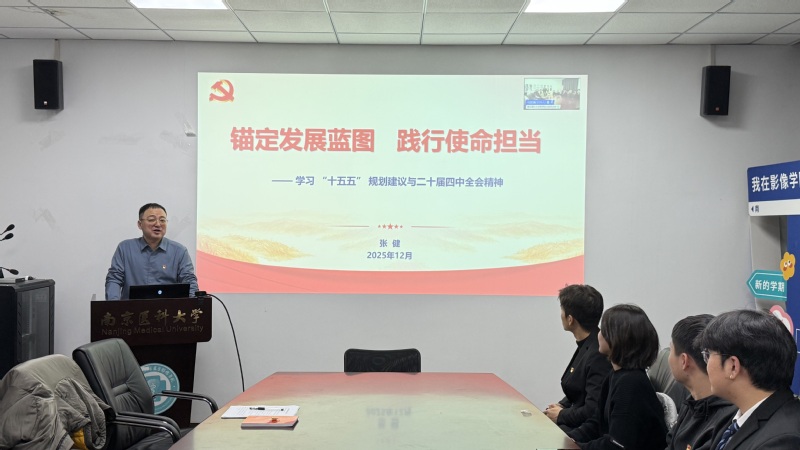 会议伊始,张健老师开展“第一议题”授课,围绕“十五五”规划建议的指导思想、“六个坚持”重大原则及七大主要目标,结合医学影像专业特色,重点解读了“健康中国建设”“科技自立自强”“民生保障”等战略任务,强调党员要将个人发展融入中国式现代化建设大局,以专业所长践行规划要求。