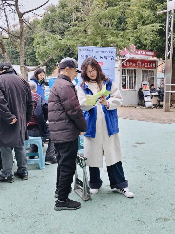 学院志愿者围绕脑卒中防治核心要点开展专题宣讲,重点讲解脑卒中的高危因素、早期识别“FAST”原则、急救处置流程及日常预防策略等内容。宣讲采用通俗易懂的表述,将专业医学知识转化为居民易于理解的内容。同时,志愿者向居民发放脑卒中防治、血压血糖管理等宣传手册,推动健康知识长效传播。